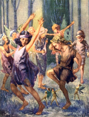 "Not she," said the old woman. "She runs with them instead of away from them. When I saw them back there they had all taken hands and were leaping in a circle around her. She was jumping and dancing in the center as wild and lawless as they, and just as high, too.... But it's a pity she isn't with her mother all the same, going on decent errands in the village. Only of course it's not her fault, poor child! She daren't go into the village."