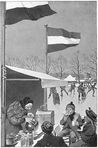 Elken morgen spande Dik zijn mooien hit voor den wagen, om de klanten, die buiten het dorp woonden, te gaan bedienen. Zijn paard was altoos helder geroskamd, zijn wagen zag er proper uit, en wat hij leverde was prompt in orde. Nooit vergat hij te doen, wat hij beloofd had, en tegen wat extra werk zag hij niet op, als hij een van zijne klanten er mede gerieven kon. Geen wonder dus, dat hij steeds méér verkocht, er telkens nieuwe klanten bijkreeg en er zelden of nooit een verloor. In enkele jaren was de winkel van Jan Trom de voornaamste van het dorp geworden, en ʼt was een lust te zien, hoe vol het er somtijds wezen kon. Vooral op Zaterdagavond was het er verbazend druk. Dan stond de winkel opgepropt met menschen, die inslag voor de volgende week kwamen doen, en hadden Vader [6]en Moeder Trom, benevens Dik, geen handen genoeg, om de klanten te bedienen. Maar al moesten dezen wat wachten, dat hinderde niet erg, want allen luisterden graag naar de vroolijke grappen van Dik, die zijn praatje steeds klaar had.