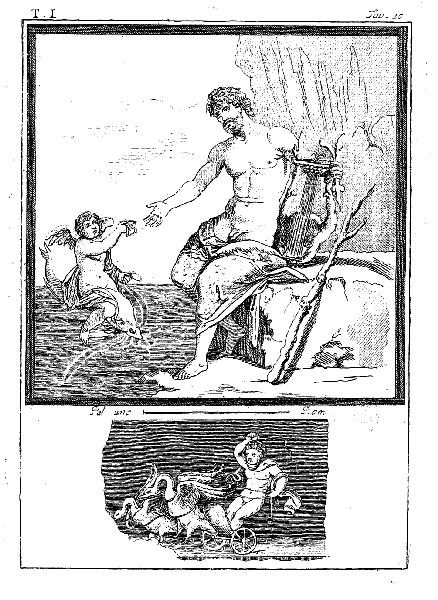 La peinture qui est au bas représente un Amour guidant un char attelé de deux cygnes.