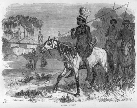 Ali at length moved his camp, and Park was sent forward under the escort of one of the king’s sons. The new encampment was larger than that of Benowm, and situated in the midst of a thick wood, about two miles distant from a neighbouring town, called Bubaka. Here Park was introduced to queen Fatima by Ali. She seemed much pleased at his coming, shaking hands with him, even though Ali had told her that he was a Christian. She was a remarkably corpulent woman, with an Arab cast of countenance and long hair.