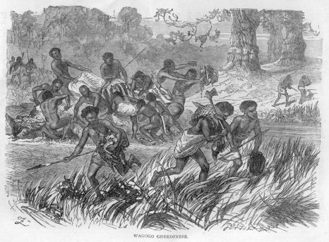 On the evening of the 12th they came in sight of Benowm, which presented to the eye a number of dirty-looking tents scattered without order over a large space of ground. Among the tents appeared large herds of camels, cattle and goats. As soon as he was seen the people who were drawing water threw down their buckets and, rushing towards him, began to treat him with the greatest discourtesy; one pulled at his clothes, another took off his hat, while a third stopped him to examine his waistcoat buttons.
