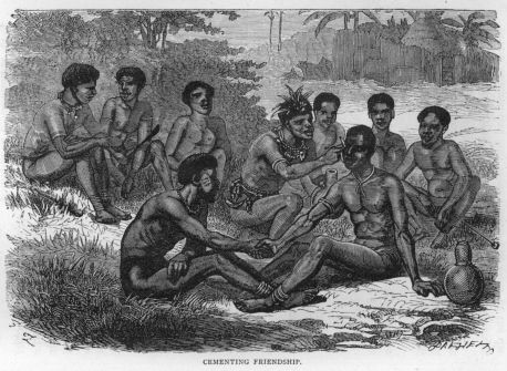Koomakary was the birthplace of one of Park’s companions from Pisania, a blacksmith, who had been attentive to him on the road. On approaching the place shouts were raised and muskets were fired. The meeting between the long-absent blacksmith and his relations was very tender. The younger ones having embraced him, his aged mother was led forth, leaning upon a staff. Every one made way for her as she stretched out her hands to bid her son welcome. Being totally blind, she stroked his arms, hands and face with great care, and seemed highly delighted that her ears once more could hear the music of his voice. “It was evident,” observes Park, “that, whatever may be the difference between the negro and European, there is none in the genuine sympathies and characteristic feelings of our common nature.”