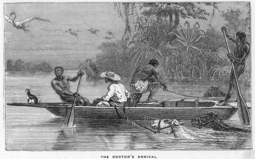 This adventure delayed us. After standing off for some days, we hove to, keeping a sharp look-out. The next morning, having a good breeze, we again stood in towards the coast. No sail like the corvette appearing, we stood on till we reached the mouth of the magnificent river Magdalena, inferior only in size to the Orinoco and Amazon on that part of the continent. After forming numerous lakes, it empties itself, by three mouths, into the Caribbean Sea. Off one of these mouths we brought up, my uncle proposing to land with our property, and ascertain the places held by the Republicans at which the Flying Fish could safely discharge her cargo. We were afterwards to ascend the stream as far as it was navigable, a voyage which would occupy us some weeks. The spot where we were to leave the river was about three days’ journey by land from Santa Fé de Bogotà, the capital of the province of New Granada. After the boat had put us on shore, she was to return to the schooner with the information we could obtain.