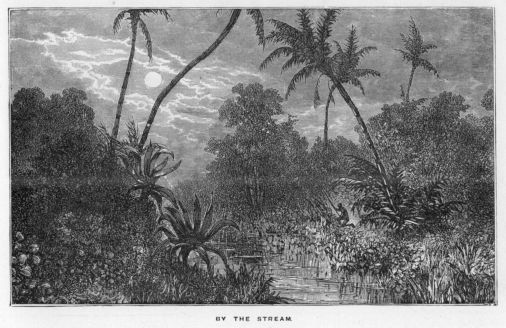 We had no provisions with us, and we could not tell whether the region into which we were penetrating was inhabited by hostile Indians or wild beasts and venomous serpents. After going some way, however, the stream widened, and at the same time became shallower; and the mangrove-trees ceasing, we found ourselves in the midst of a dense forest. Looking out anxiously on both sides, we observed a bank which would afford us a small space on which to land; so pulling up to it, we hurriedly sprang on shore. In spite of all our efforts, the boat was nearly half-full of water.