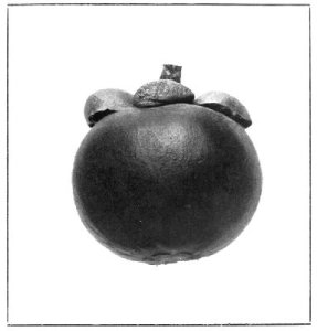 Many attempts have been made during past years to introduce this delicious fruit into Queensland, but these always resulted in failure. True, a certain variety of mangosteen has been successfully grown at Port Douglas, also on the Lower Burdekin, and rumours of the existence of the true Java mangosteen (Garcinia mangostana) have been received, but, in nearly every case, they have, on investigation, proved to be Garcinia xanthochymus, or some other species. At the Kamerunga State Nursery, however, trees of undoubted parentage were successfully raised. It is said that a thriving young plant, which is unquestionably G. mangostana, is owned by Mr. Banfield, of Dunk Island. The records of the Kamerunga Nursery show that in October, 1891, a quantity—about 100—of ripe mangosteen fruit was received from the Batavian agency by the then manager, Mr. Ebenezer Cowley, from which some 600 seeds were obtained. Of these, only a few germinated. The next mention is of the distribution, in February, 1892, of six plants to an applicant on the Mossman, and of two more in May of that year. Since then several young trees have been raised at the nursery, and one of them, in January, 1913, fruited for the first time for twenty-two years, and is the first to have done so in this State. Some of the fruit was sent to the Department of Agriculture and Stock, and proved to be fully equal to those of Java. A full history of the mangosteen and of its introduction into Queensland is given in "The Queensland Agricultural Journal" (vol. xxx., June and July, 1913). The photographs were taken from the original fruit.
