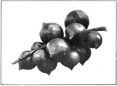 Under this heading I will include all the Anonas, such as the sour sop, sweet sop, bullock's heart, and cherimoya. The sour sop is purely tropical, and is very sensitive to frost, but the other species are by no means so tender, and can be grown anywhere along the coast where the soil is suitable, as well as at many inland places. All the species produce very fine fruits, that vary somewhat in shape, in the roughness of the skin, and in size. The sour sop is the largest, and attains a size of 6 to 8 lb. The fruit is covered with soft spines, and is of an irregular oval, or even pyriform, shape. It ripens very soon after it is gathered, consequently cannot be sent any distance. It is a pleasant fruit of an aromatic sub-acid flavour. The pulp surrounding the seeds is of a woolly consistency, and this is surrounded by a custard-like mass which is much appreciated by those who have acquired a liking for it. It is a comparatively uncommon fruit, and is confined to the tropics.