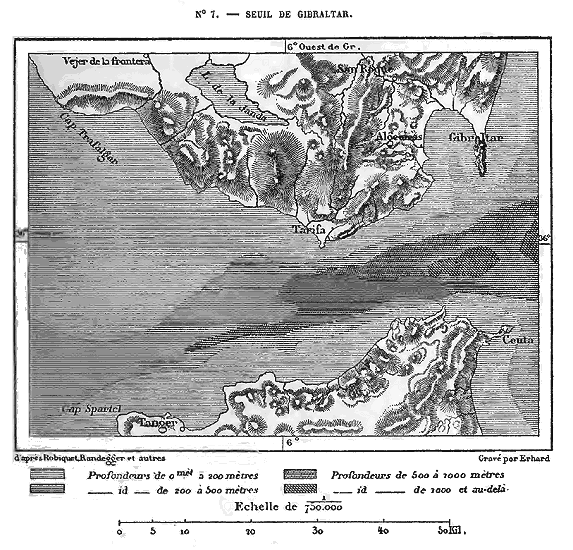Sans parler des changements qui ont dû s'opérer dans la configuration de l'Europe pendant les périodes géologiques antérieures, il est certain que, durant l'époque moderne, la forme du continent s'est grandement modifiée. Si l'Europe était autrefois séparée de l'Asie occidentale par un large bras de mer, en revanche, il fut un temps où elle tenait à l'Anatolie par la langue 12 de terre où s'est ouvert depuis le détroit de Constantinople. De même, l'Espagne se reliait à l'Afrique avant que les eaux de l'Océan eussent fait irruption dans la Méditerranée, et probablement aussi la Sicile se rattachait à la Mauritanie. Enfin, les îles Britanniques taisaient partie du tronc continental. Les érosions de la mer, en même temps que les exhaussements et les dépressions des terrains, n'ont cessé et ne cessent encore de modifier les contours du littoral. Les nombreux sondages opérés dans les mers qui baignent l'Europe occidentale ont révélé l'existence d'un plateau sous-marin, qui, au point de vue géologique, doit être considéré comme partie intégrante du continent. Entouré d'abîmes de plusieurs milliers de mètres de profondeur, et recouvert en moyenne de 50 à 200 mètres d'eau, ce piédestal de la France et des îles Britanniques n'est autre chose que la base de terres anciennes démolies par le travail continu des vagues: c'est la fondation ruinée d'un édifice continental disparu. Ajoutées à l'Europe, toutes les berges sous-marines du littoral de l'Océan et celles de la Méditerranée accroîtraient d'un quart environ la superficie du continent; mais, en même temps, elles lui raviraient cette richesse de péninsules qui a valu à l'Europe sa prépondérance historique sur les autres parties du monde.