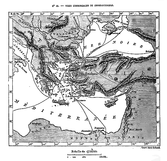 Chose remarquable! Chaque contrée péninsulaire de l'Europe a eu dans l'histoire son tour de prépondérance commerciale. D'abord la Grèce, «la plus belle individualité de l'ancien monde», fut, à l'époque de sa grandeur, la dominatrice de la Méditerranée, qui était alors presque tout l'univers. Au moyen âge, Amalfi, Gènes, Venise et autres républiques de l'Italie devinrent les intermédiaires des échanges entre l'Europe et les Indes. La circumnavigation de l'Afrique et la découverte du nouveau monde firent passer le monopole du grand commerce à Cadix, à Séville, à Lisbonne, dans la péninsule ibérique. Puis les négociants de la petite république hollandaise recueillirent en partie l'héritage de l'Espagne et du Portugal, et les richesses du monde entier affluaient dans leurs îles et leurs presqu'îles assiégées par la mer. De nos jours, c'est la Grande-Bretagne qui est devenue le principal marché de l'univers. Londres, la ville la plus populeuse de la Terre, est aussi le foyer d'appel le plus énergique pour les trésors du genre humain. Tôt ou tard sans doute le point vital le plus actif de la planète continuera de se déplacer. Quoique l'Angleterre soit admirablement placée, au centre même de la moitié du globe qui comprend presque tout l'ensemble des masses continentales, les travaux d'aménagement auxquels on soumet la Terre, l'ouverture de nouvelles voies de commerce, les variations d'équilibre dans le groupement des 23 nations peuvent faire passer Londres au second rang. Peut-être, ainsi que les Américains le prédisent, la civilisation, dans sa marche continue vers l'Ouest, remplacera-t-elle Londres par quelque citées des États-Unis; peut-être aussi, par suite d'un mouvement de retour vers l'Orient, le genre humain prendra-t-il Constantinople ou le Caire pour centre de commerce et lieu principal de rendez-vous.