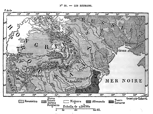 La forme des massifs alpins et du labyrinthe des chaînes orientales devait exercer sur l'histoire de l'Europe, et par conséquent du monde entier, l'influence la plus décisive. Les seules routes des Barbares étant celles qu'avait ouvertes la nature, les peuples asiatiques ne pouvaient pénétrer en Europe que par deux voies, celle de la mer ou celle des grandes plaines du Nord; A l'ouest de la mer Noire, ils trouvaient d'abord les lacs et les marécages difficiles à franchir de la vallée du Danube; puis, après avoir surmonté ces obstacles, ils rencontraient la haute barrière des montagnes, au delà desquelles le dédale boisé des gorges et des escarpements aboutissait aux régions, alors inaccessibles, des grandes neiges. Ainsi les Carpathes, les Balkhans et toutes les chaînes avancées du système alpin formaient à l'Europe occidentale comme un immense bouclier de près de 1,000 kilomètres de largeur; les populations nomades et conquérantes qui venaient se heurter contre cet obstacle risquaient d'y briser leur force. Habituées aux steppes, à l'horizon sans limites des campagnes unies, elles n'osaient gravir ces monts abrupts. Il ne leur restait donc qu'à se détourner vers le nord pour gagner les grandes plaines germaniques, où les migrations successives pouvaient s'épandre plus à leur aise. Quant aux envahisseurs poussés par la fureur aveugle des conquêtes, ceux d'entre eux qui s'engageaient quand même dans les défilés de montagnes se trouvaient pris comme dans une trappe au milieu de l'enchevêtrement des vallées. De là cette multitude de peuples et de fragments de peuples, ce fourmillement de races qui a fait des contrées danubiennes une sorte de chaos. Comme dans les remous d'un fleuve où se déposent tous les débris apportés par le 16 courant, les épaves de presque toutes les populations de l'Orient sont venues s'entasser en désordre dans ce coin du Continent.