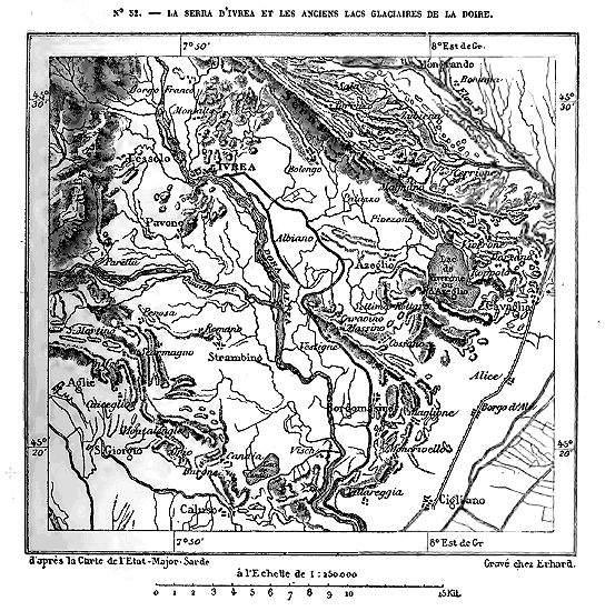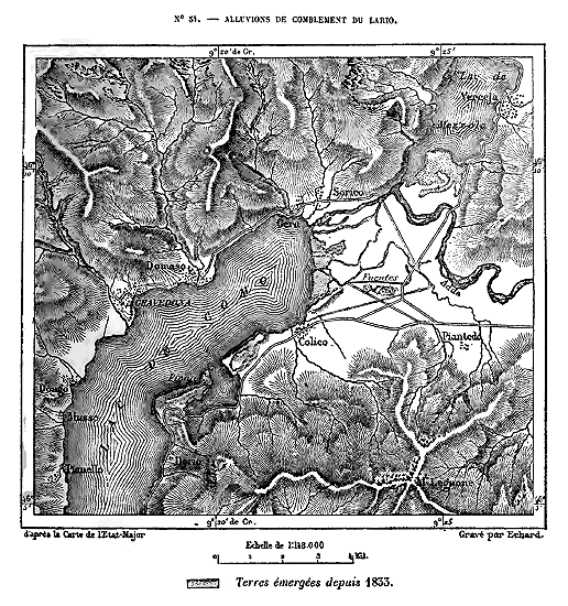 Le système des Alpes, qui doit probablement son vieux nom celtique à la blancheur de ses hautes cimes neigeuses, se développe en une immense courbe de plus de 1,000 kilomètres, des rivages de la Méditerranée au bassin du Danube. Il se compose, en réalité, d'une trentaine de massifs formant autant de groupes géologiques distincts, mais reliés les uns aux autres par des seuils très-élevés; ses roches, qu'elles soient de granit, d'ardoise, de grès ou de calcaires, se maintiennent au-dessus des plaines basses en un rempart continu. Dans les âges antérieurs, les Alpes furent beaucoup plus hautes, ainsi qu'a permis de le constater l'étude des éboulis et des strates à demi détruites par les agents naturels; mais, tout dégradées qu'elles soient, elles élèvent encore des centaines de cimes dans la région des neiges persistantes, et de grands fleuves de glaces s'épanchent de toutes ses hautes crêtes dans les vallées supérieures. Des campagnes du Piémont et de la Lombardie, les glaciers et les névés apparaissent comme un diadème étincelant enroulé sur le sommet des monts.