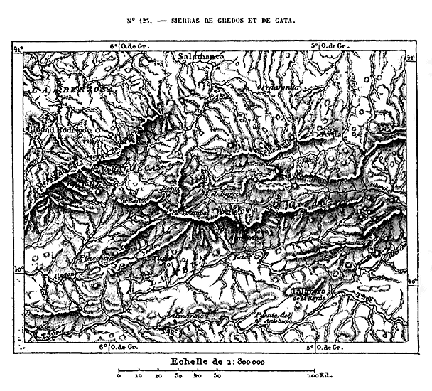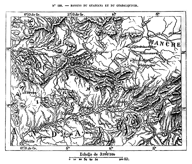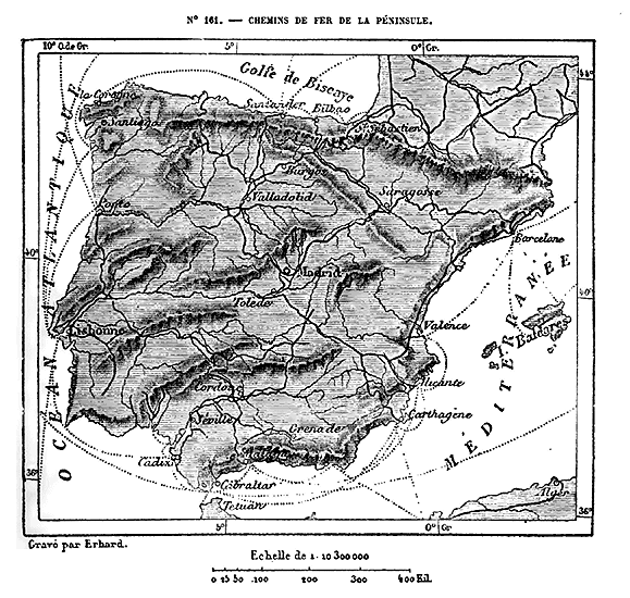 Cette Europe en résumé, qui comprend, en outre des trois péninsules méditerranéennes, la France, l'Allemagne et l'Angleterre, se divise naturellement en plusieurs parties. Les îles Britanniques forment un premier groupe nettement séparé, grâce à la ceinture de mers qui l'environne. La presqu'île hispanique n'est guère moins distincte du reste de l'Europe, car elle vient confiner à la France par un véritable rempart de montagnes, le plus difficile à franchir qui existe dans le continent; en outre, une profonde dépression, dont le seuil de partage n'a pas même 200 mètres, 14 réunit l'Océan et la Méditerranée, immédiatement au nord de l'Espagne. L'unité géographique n'est complète que pour le système des Alpes et les chaînes de montagnes qui s'y rattachent, en France, en Allemagne, en Italie et dans la péninsule hellénique: c'est là que se trouve la charpente de l'édifice continental.