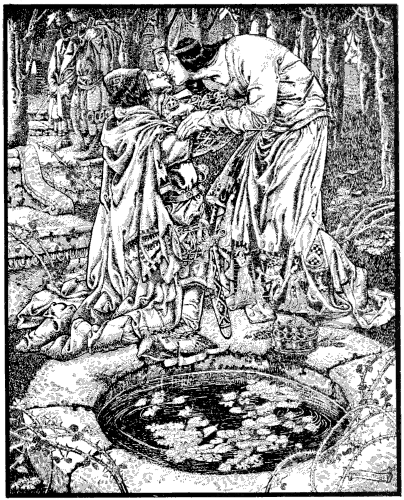 But the one remaining grain of millet-seed turned into a most beauteous youth, a youth so beauteous that when the Tsarivna beheld him she fell in love with him on the spot, and begged the Tsar and Tsaritsa right piteously to let her have him as her husband. “With no other shall I ever be happy,” said she; “my happiness is in him alone!” For a long time the Tsar wrinkled his brows at the thought of giving his daughter to a simple youth; but at last he gave them his blessing, and they crowned them with bridal wreaths, and all the world was bidden to the wedding-feast. And I too was there, and drank beer and mead, and what my mouth could not hold ran down over my beard, and my heart rejoiced within me.