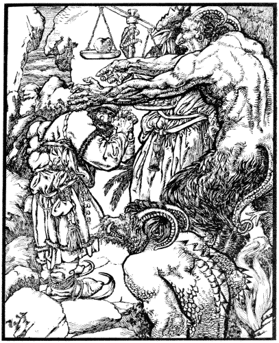 Then the man was full of gratitude. “I thank thee, O Wind!” said he, “for thy courtesy in giving me such a sack as will give me my fill of meat and drink without the trouble of working for it.”––“For a lazy loon, ’twere a double boon,” said the Wind. “Go home, then, but look now, enter no tavern by the way; I shall know it if thou dost.”––“No,” said the man, “I will not.” And then he took leave of the Wind and went his way.