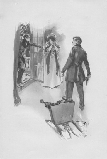 “I say, where you going?” he repeated, turning over a log and sending a shower of sparks up the flue.