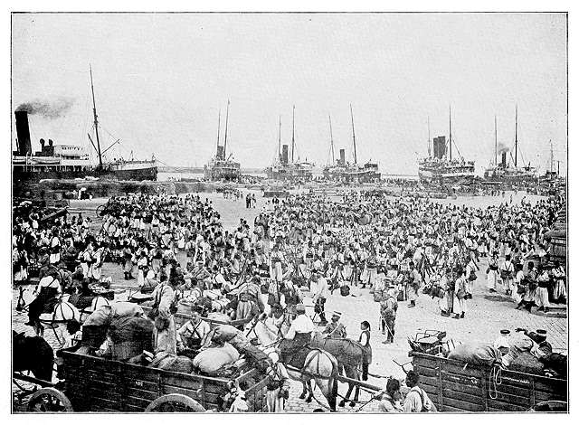 Embarquement de tirailleurs à Alger.--Phot. Geiser]