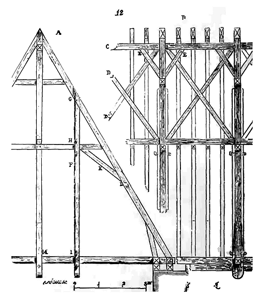 l'art de la charpenterie à cette époque. Nous en donnons (12) en A la