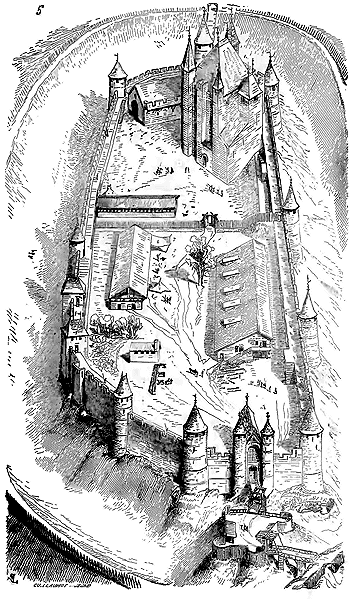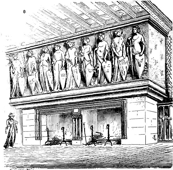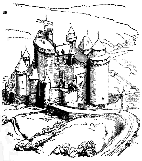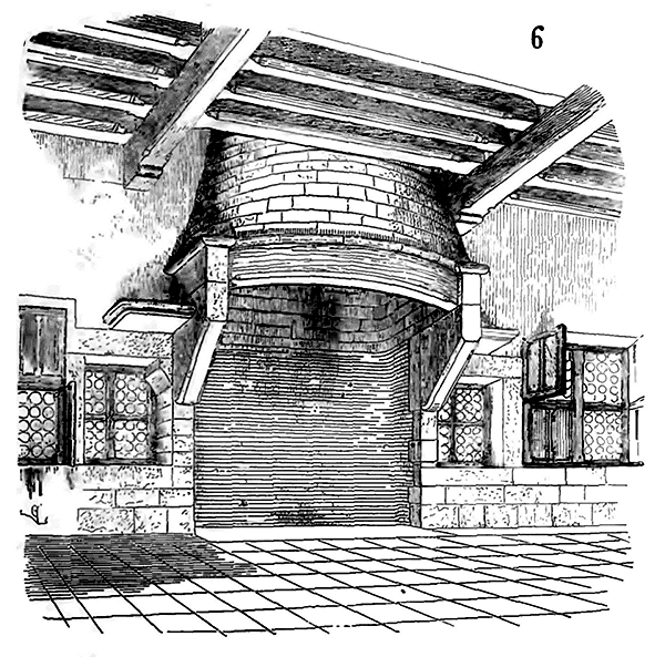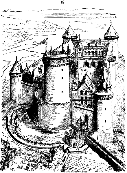 C'était dans les grand'salles des châteaux, des abbayes, des évêchés, des édifices publics, que les charpentiers du moyen âge étaient particulièrement appelés à déployer toutes les ressources de leur art. Chaque demeure féodale renfermait un vaste espace couvert, qui servait de salle de réunion dans les solennités, lorsque le seigneur exerçait ses droits de justicier, lorsqu'il conviait ses vassaux soit pour des fêtes, soit pour prendre part à ses actes de chef militaire. En temps de siége, la grand'salle du château servait encore de logement à un supplément de garnison; en temps de paix, c'était encore un promenoir comme nos salles des Pas-Perdus annexées aux palais de justice modernes. Généralement, ces grand'salles étaient situées au premier ou même au second étage, le rez-de-chaussée servant de magasin, d'écurie, de réfectoire et de dépôts d'armes. N'étant couvertes que par la toiture, et les murs des châteaux ne pouvant être renforcés par des contre-forts qui eussent gêné la défense, ces salles n'étaient pas voûtées, mais de magnifiques charpentes, lambrissées à l'intérieur, formaient un abri sûr contre les intempéries de l'atmosphère.