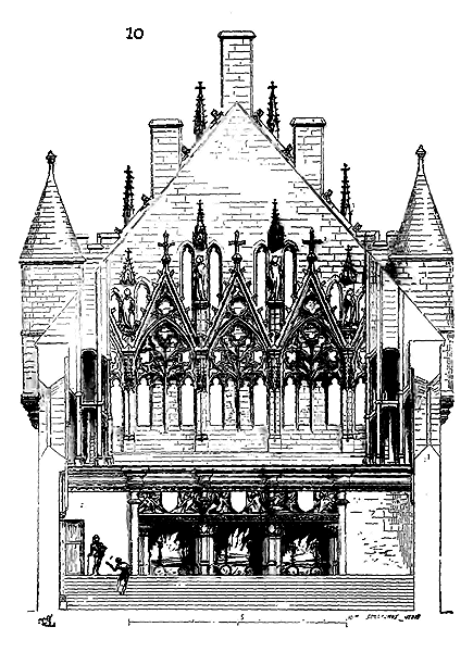 Le Palais de la Cité, à Paris, avait sa grand'salle couverte par un double berceau en tiers-point lambrissé reposant sur une rangée de piliers réunis par des archivoltes 9. Les châteaux de Montargis, de Coucy, de Pierrefonds, etc., possédaient d'immenses salles couvertes par des charpentes apparentes (voy. CHÂTEAU). Malheureusement toutes ces charpentes sont aujourd'hui détruites, et celles qui existent encore n'appartiennent qu'à des châteaux de second ordre. Nous en excepterons cependant le palais des comtes de Poitiers (palais de justice actuel de Poitiers), qui a conservé sa belle charpente de grand'salle, qui date du commencement du XVe siècle, l'archevêché de Reims et le palais de justice de Rouen 10.