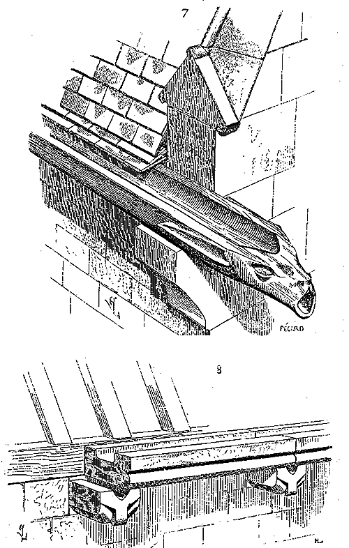Lorsque, pendant la période romane, on prit le parti de fermer les nefs ou les salles des grands édifices par des voûtes, le berceau fut la première forme choisie (voy. ARCHITECTURE RELIGIEUSE). La couverture était immédiatement posée alors sur l'extrados de la voûte; c'était en effet le moyen le plus naturel. Mais, dans le nord de la France, on reconnut bientôt que ces couvertures posées à cru sur la voûte ne pouvaient les protéger d'une manière efficace; les réparations étaient difficiles, car les eaux pluviales, s'introduisant sous un joint de dalle ou sous une tuile, allaient dégrader les voûtes loin du point par lequel l'infiltration avait lieu. On songea donc à protéger les voûtes par des charpentes destinées à isoler la couverture et à permettre ainsi de réparer promptement et facilement la moindre dégradation. Mais le système des voûtes en berceau obligeait les constructeurs, ou d'élever les murs goutterots jusqu'au-dessus du niveau de la clef de ces voûtes pour pouvoir passer les entraits de la charpente, ou de se passer d'entraits s'ils laissaient la crête des murs goutterots à un niveau inférieur à ces clefs de voûtes.