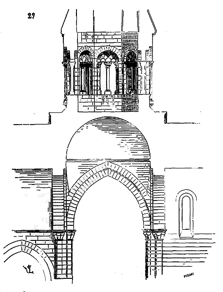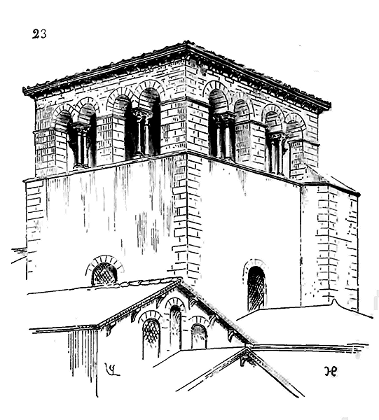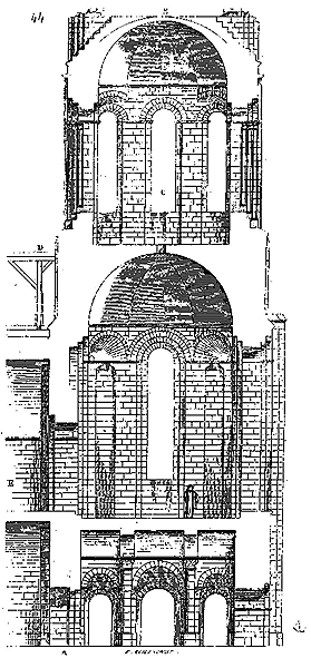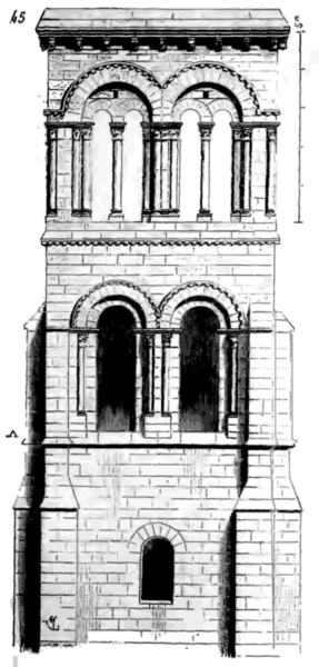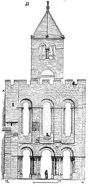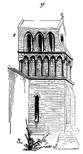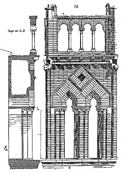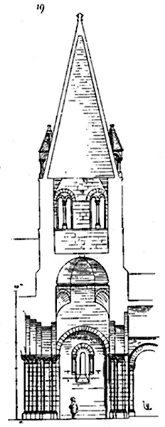 Aussi, dans les petits édifices romans couverts par des charpentes, on s'aperçoit que les constructeurs ont été entraînés à donner à leurs murs une épaisseur beaucoup plus grande que celle exigée par le poids de la couverture, afin de trouver, à la tête de ces murs, une assiette assez large pour recevoir la portée de ces bois superposés. La ferme de comble apparente à l'intérieur, taillée conformément à la tradition antique, privée de plafond posé sur l'entrait, conservait une apparence peu monumentale; on voulut obtenir une décoration par la manière d'assembler et de tailler les bois. Pendant la période romane, surtout dans le centre, l'ouest et le midi de la France, les architectes étaient préoccupés de l'idée de fermer les nefs par des voûtes; lorsqu'ils ne purent le faire, faute de ressources suffisantes, ils cherchèrent à donner à leurs charpentes, à l'intérieur, l'aspect d'un berceau.