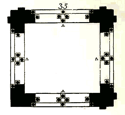 On remarquera que ce système de goussets assemblés dans les pannes a encore cet avantage d'empêcher le hiement des fermes et de tout le chevronnage.