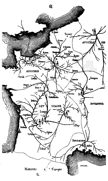 Naturellement, sous le règne des rois mérovingiens, parmi les traditions des constructions romaines, la charpenterie fut une de celles qui se conservèrent le mieux; le sol n'était pas épuisé, les forêts couvraient encore une grande partie des Gaules, et le bois était une des matières que l'on employait de préférence dans les constructions publiques ou privées, à cause de son abondance.