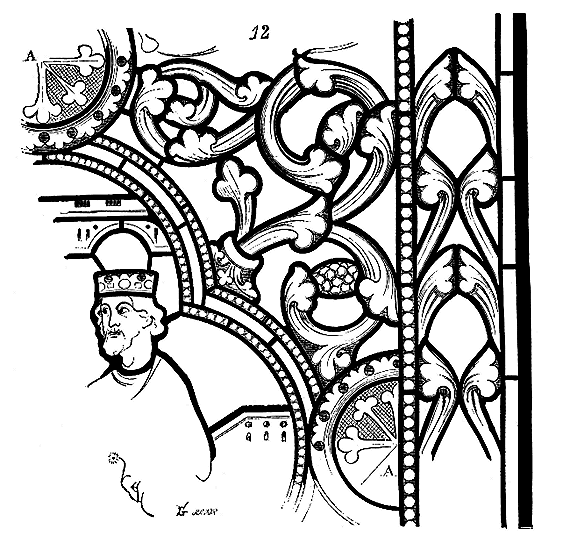Les accidents qui s'étaient produits dans des édifices du XIIe siècle, à cause de l'absence ou de l'insuffisance des tas de charge, ne furent pas perdus pour les maîtres du XIIIe, siècle. Ceux-ci en vinrent bientôt, ainsi que nous le démontrons dans l'article CONSTRUCTION, à ne plus donner de coupes aux claveaux que quand leur extrados échappait à l'aplomb de la charge supérieure (fig. 3).