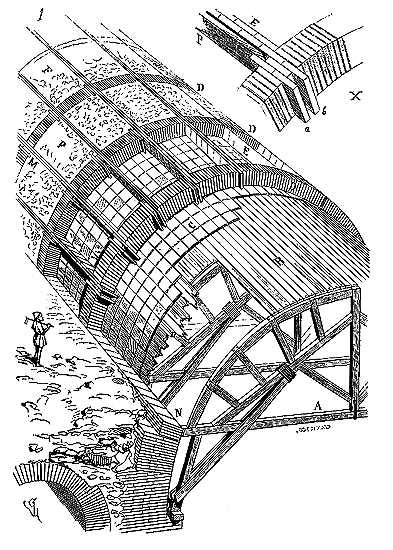 Ce principe une fois admis, ils en tirèrent des conséquences nombreuses; ils parvinrent ainsi souvent à neutraliser presque complétement des poussées d'arcs sur des murs, ou à diminuer considérablement le volume et le poids des maçonneries destinées à contre-buter ces poussées.