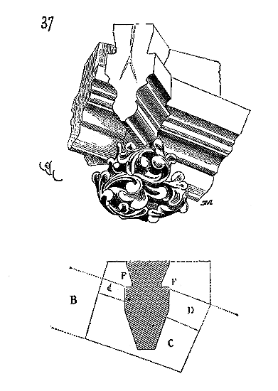 Ainsi le tailleur de pierre modèle son profil, comme le ferait un graveur, pour faire sentir les diverses courbures. La ripe, au XVe siècle, est l'outil uniquement adopté pour terminer tout ce qui est mouluré, et la bretture n'est plus employée que pour les parements droits.
