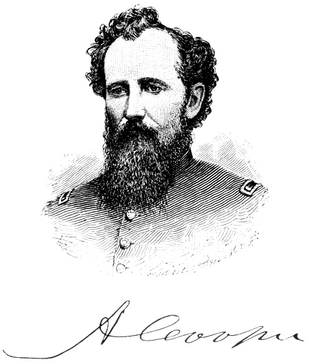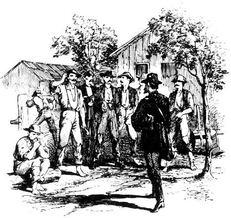 Having up to this time been treated with the respect supposed to be due an officer, I must say that I was not quite prepared for such a bombastic display of authority. The ludicrous gestures and evident bravado of the man (for I believed then, and do now, that he was a craven coward) only caused me to laugh as I told him that the place for men who were fond of shooting was at the front; that I called my Sergeant out of the ranks and was[Pg 43] alone to blame for his leaving his place in the line. Knowing Sergeant Cosgrove (or Cunningham, as his right name was, he having, as he told me on leaving the service, enlisted under an assumed name), and having been with him in places that tried what kind of stuff men were made of, I could understand the look of contempt with which he quietly took his place again in the line.