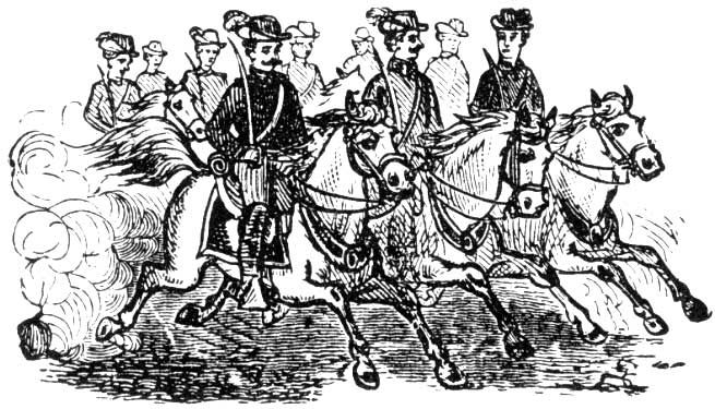 By the absence of Capt. Roach, of Company A, and the sickness of Capt. Hock, of Company F, I was in command of the detachment of cavalry, and at once ordered a bugler who happened to be standing near, to[Pg 14] sound boots and saddles; sent Lieutenant Russel, who was mounted, having just rode up, to headquarters, to notify General Wessels that our pickets had been driven in and ask for orders for the cavalry. He returned just as I had formed the two companies into line with orders to make a reconnoissance on the Washington road, and, without getting into a fight, ascertain, as near as I could, the strength of the enemy in our front.