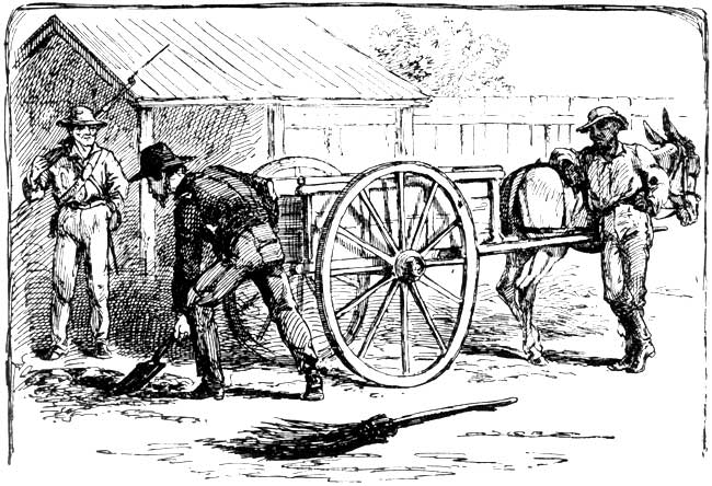 On the 7th a fire broke out, and nearly all of the guards who were on duty at the time, went to town; when they returned they were drunk, and for a time it looked as though we would have to turn out and assist in their arrest. Guns and pistols were used, and the bullets came whizzing over our heads in the most reckless manner. This, of course, was very interesting for us, who were obliged to lie in our tents, surrounded with armed men, and take all the chances of a fight without being able to participate in it. The melee finally ended by four of the guards who were crazy drunk, being bucked and gagged to keep them quiet.