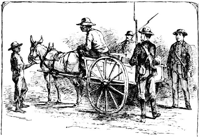 [Pg 33]The Johnsons, who were wealthy planters, had taken the oath of allegiance and claimed to be Union men, and were somewhat embarrassed at having us, with whom they had been on such friendly terms, brought to their farm as prisoners. They seemed to feel a sympathy for us, and one of them said to me, privately, that they were really in sympathy with the Union cause, but were obliged to be very careful of their conduct toward us while the Confederate troops were there, for their property, and even their lives, were at stake. I now believe they were honest. I do not wish to confound these Johnsons with one of the same name, who lived on the Washington road, near our vidette post. He pretended to be loyal, but we did not take any stock in him, and found after our capture that he was an open and exultant Secesh. While at the Johnson farm we could hear the crack, crack, crack of muskets, down in the swamp where the negroes had fled to escape capture, and were being hunted like squirrels or rabbits, I can think of no better comparison, and the Johnnies themselves laughingly said (when questioned about where they had been after their return), “They’d been out gunning for niggers.”