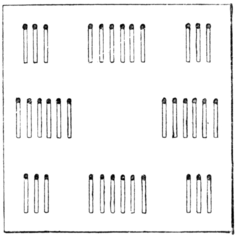 At a certain school were four long dormitories, built in the form of a square, in which thirty-two boys occupied beds, as shown by matches in Fig. 17.