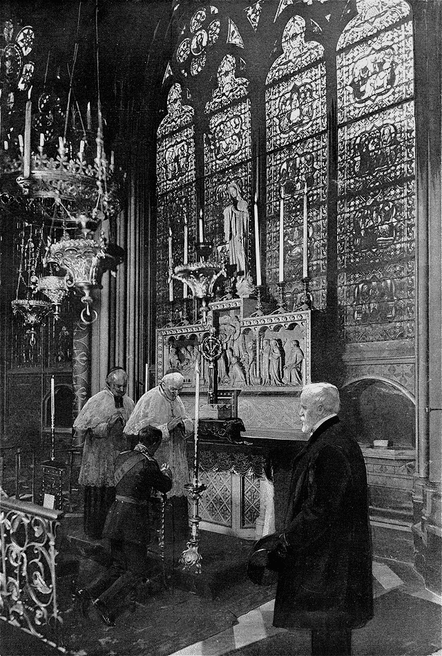 Alphonse XIII, «Majesté Catholique», ne pouvait venir à Paris sans visiter Notre-Dame, où, avant lui, s'était arrêté le tsar, souverain d'un pays schismatique, chef même d'une religion schismatique.