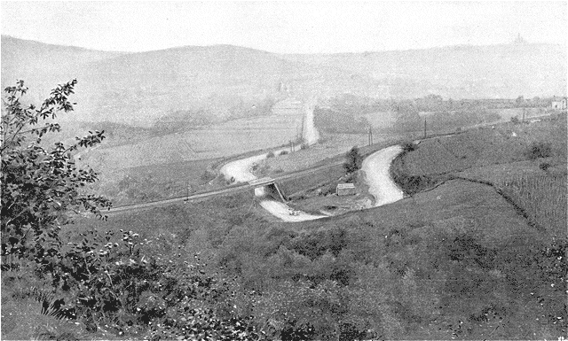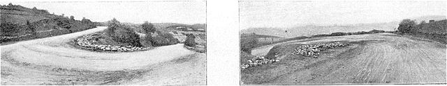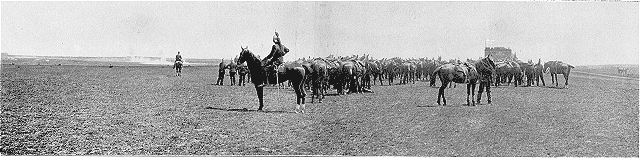 AU CAMP DE CHALONS (1er juin).--Sur la crête Niel: l'artillerie de 75 tire sur la cavalerie et l'infanterie simulées par des silhouettes. Photographie prise de la tente royal.