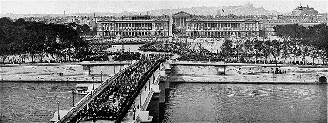 L'ARRIVÉE DU ROI ALPHONSE XIII (30 mai).--Vue panoramique du cortège sur le pont et la place de la Concorde. Photographie prise du toit du Palais-Bourbon.--Cliché le Deley.