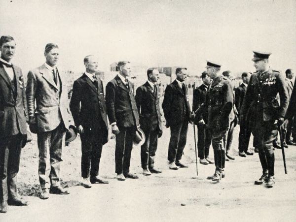 THE KING WITH MARSHAL FOCH, GENERAL WEYGAND AND FIELD-MARSHAL EARL HAIG