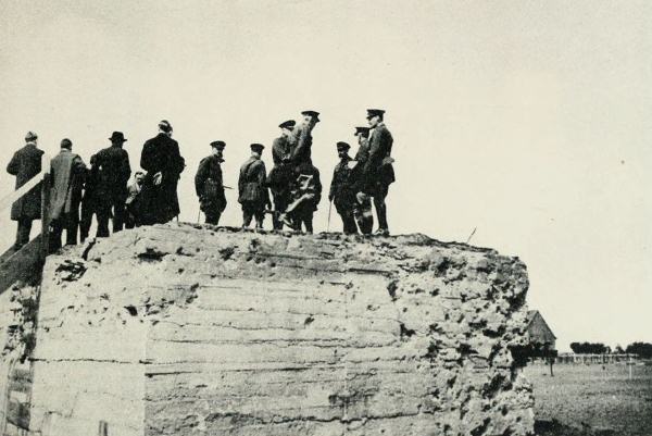 INSPECTING THE GERMAN BLOCKHOUSE WHICH WILL FORM THE BASE OF THE CENTRAL MEMORIAL