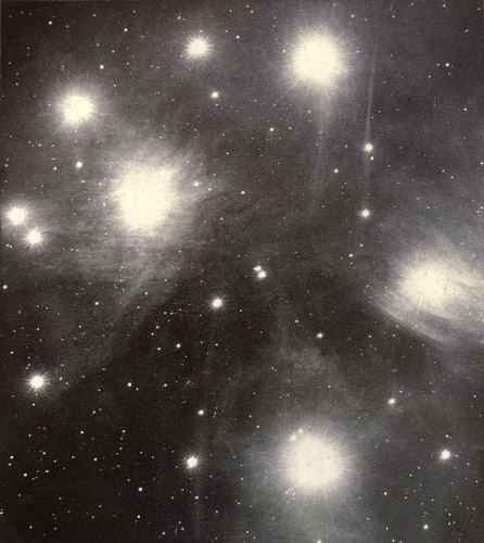 The main purpose of this volume is to reproduce and make available for study, the larger and more interesting nebulæ and clusters on the programme, sixty-eight in number. The thirty-six subjects not reproduced are for the most[Pg 8] part small or apparently not of special interest. The difficulties attending the reproduction of astronomical photographs by mechanical processes are well-known to all who have made the attempt. It seems necessary to recognize, at least at present, that delicate details of structure will be lost, and that contrasts between very bright and very faint regions will be changed, especially if a good sky background is preserved; in other words, that the best obtainable reproductions fall far short of doing justice to the original photographs. Technical studies should be based upon the original negatives or upon copies on glass.