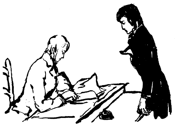 Et, tout en parlant, elle rangeait la vaisselle. Le peintre ne l'écoutait plus. Il cherchait la silhouette d'un sans-culotte, en bonnet rouge et en carmagnole, qui devait, dans son jeu de cartes, remplacer le valet de pique condamné.