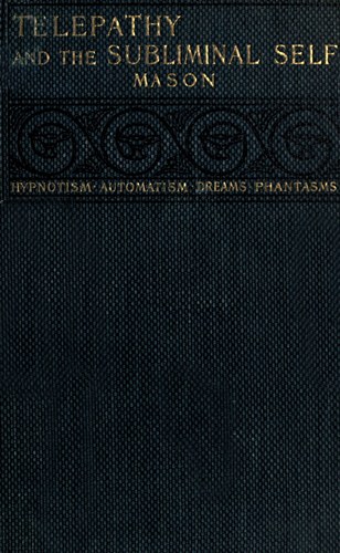 Project Gutenberg's Telepathy and the Subliminal Self, by R. Osgood Mason This eBook is for the use of anyone anywhere at no cost and with almost no restrictions whatsoever. You may copy it, give it away or re-use it under the terms of the Project Gutenberg License included with this eBook or online at www.gutenberg.org Title: Telepathy and the Subliminal Self Author: R. Osgood Mason Release Date: August 25, 2011 [EBook #37203] Language: English Character set encoding: ISO-8859-1 *** START OF THIS PROJECT GUTENBERG EBOOK TELEPATHY AND THE SUBLIMINAL SELF *** Produced by Bryan Ness and the Online Distributed Proofreading Team at https://www.pgdp.net (This file was produced from images generously made available by The Internet Archive.)