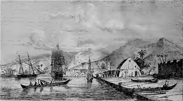 Mais après Hawaii, l'Ile la plus importante en richesse et en population est Oahou, dont la ville principale est Honoloulou, Oahou est la résidence habituelle du roi Kamehameha III. C'est là que résident aussi les consuls français, anglais et américains. Honoloulou, ville aujourd'hui assez régulièrement tracée, est défendue par un fort armé de 32 canons; on y trouve un des palais du roi, une église catholique et plusieurs temples protestants.