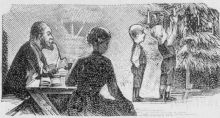 Salissa oli lahjapöytä, kukilla ja seppeleillä koristettu. Pöydällä oli rinkilä ja laiva, varustettu mastoilla, purjeilla, kokkapuulla ja oikealla taklingilla; tätä oli Joonas, vanha merimies, jo kauan nikkaroinut. Tällaista laivaa oli Valtteri jo kauan toivonut; hän ihastui suuresti, ja laivalle piti heti annettaman nimi. Uljaan nimen se saikin, nimittäin Lunkentus.