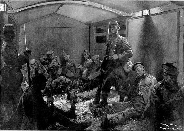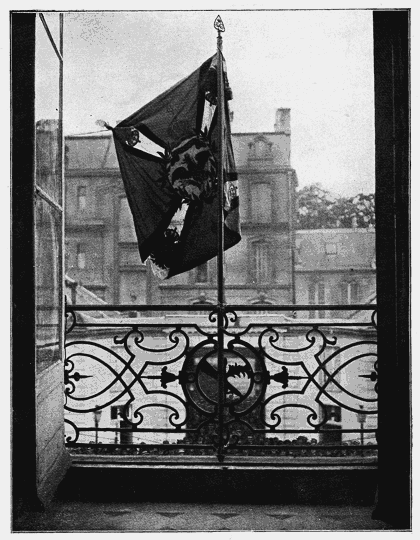Lundi matin, à 9 h. 45, le colonel Serret, ancien attaché militaire de France à Berlin, se présentait au ministère de la Guerre, en automobile, accompagné d'un officier de l'armée active et de deux sous-officiers de gendarmerie: il venait remettre au gouvernement le premier drapeau pris aux Allemands, le drapeau du 132e d'infanterie, enlevé--au prix de quels prodiges de vaillance!--par les soldats du 1er bataillon de chasseurs à pied, à l'affaire de Sainte-Blaise, Alsace.