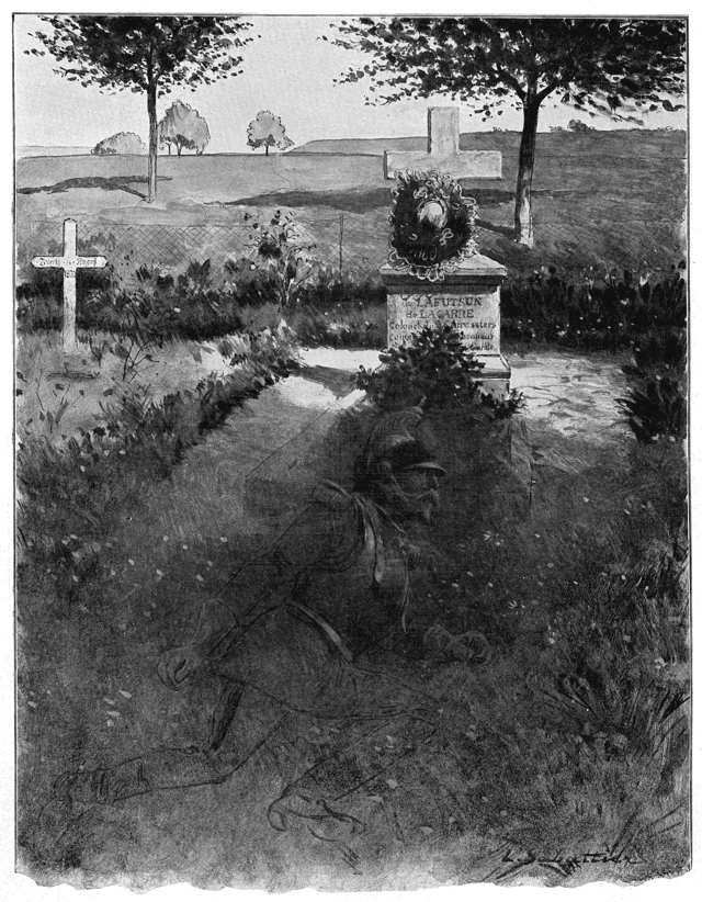 Tout le jour, des curieux bien sages, presque recueillis, défilèrent, en rangs pressés, devant cette enseigne captive. Le soir elle fut présentée au président de la République, et passa la nuit à l'Elysée dans la chambre de l'officier de service. Le lendemain matin elle était conduite aux Invalides, où elle ne sera qu'un trophée de plus, perdu dans la masse de ceux qui flottent autour du dôme glorieux. Une compagnie de la garde républicains lui faisait escorte.