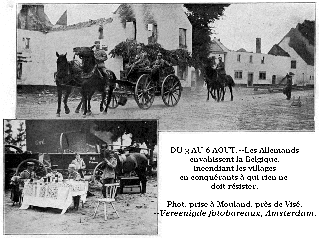 Mercredi, 19 août.--Un communiqué officiel du ministère de la Guerre déclare qu'il est établi, d'après les documents saisis sur les blessés, les morts et les prisonniers, que toute la responsabilité des atrocités commises en Alsace-Lorraine par les troupes allemandes, doit retomber sur le commandement. Elles ont été méthodiquement ordonnées.