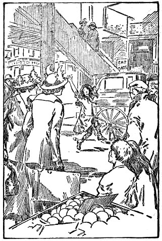 Madge started in amazement. Her manuscript dropped to the ground. Every face but hers blanched with terror. The swaying arch was now visible to other people besides Phil. Tom leaped to his feet, but he was tightly wedged in between rows of women. Phil Alden made a forward spring just as the arch tumbled. She was not in time to save Madge, but some one else had saved her; for, before Phil could reach the front of the stage, Madge’s name had been called again. Although the voice was an unknown one, Madge instinctively obeyed it. She made a little movement, leaning out to see who had summoned her, and the arch crashed down just at her back.