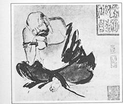 One of the most influential figures in ancient Chinese lore is remembered today merely as Lao Tzu (Venerable Master). Taoist legends report he once disputed (and bettered) the scholarly Confucius, but that he finally despaired of the world and rode an oxcart off into the west, pausing at the Han-ku Pass—on the insistence of its keeper—to set down his insights in a five-thousand-character poem. This work, the Tao Te Ching (The Way and the Power), was an eloquent, organized, and lyrical statement of an important point of view in China of the sixth century B.C., an understanding later to become an essential element of Ch'an Buddhism.