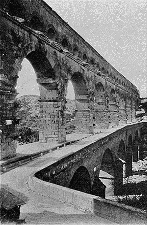 L'ouvrage est formé de trois rangs d'arcades superposés. Les deux premiers sont de 6 et de 11 grandes arcades qui ont jusqu'à 24 mètres d'ouverture, le troisième, établi à environ 47 mètres au-dessus du niveau de l'eau, a 35 arcades plus petites. Ces proportions, hors de toute mesure avec celles du Gardon, s'expliquent par le fait que le «Pont du Gard» n'est pas un pont: c'est un aqueduc. Il fut construit pour réunir par-dessus la vallée, à une altitude considérable, les deux collines entre lesquelles coule le Gardon, et faire passer de l'une à l'autre les eaux des fontaines d'Eure et d'Airon destinées à l'alimentation de Nîmes.